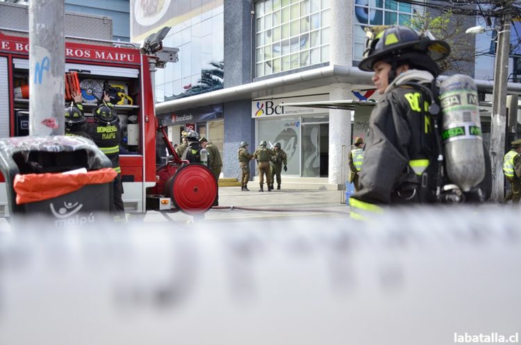 Hay daño solamente en el cajero, y propio del trabajo del extintor -que manipuló el guardia-, señaló el comandante del cuerpo de bomberos de Maipú, Ricardo Becerra.