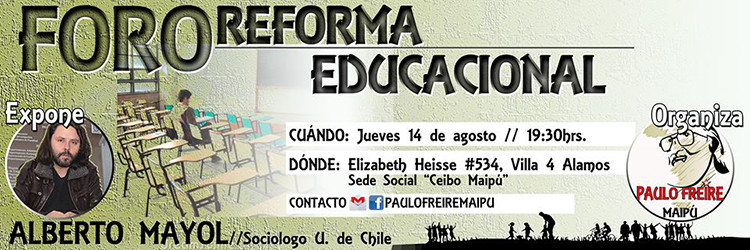 El Centro Cultural Paulo Freire de Maipú invita a una charla sobre la reforma educacional, que contará con la participación del destacado sociólogo y académico Alberto Mayol, quien la analizará en profundidad.
