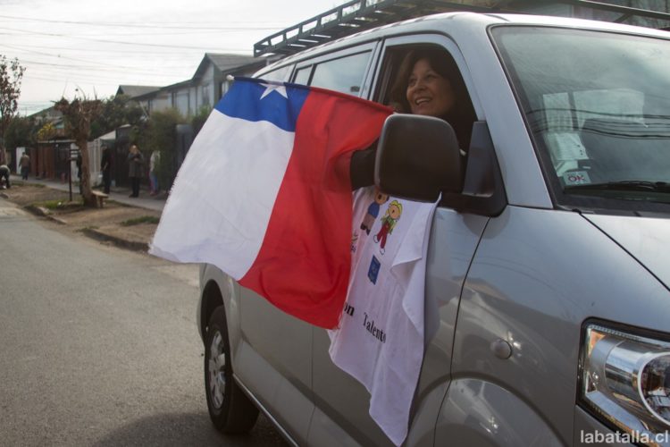 La caravana se detuvo frente a los pocos establecimientos municipales de la comuna que no se ha plegado al actual paro indefinido.
