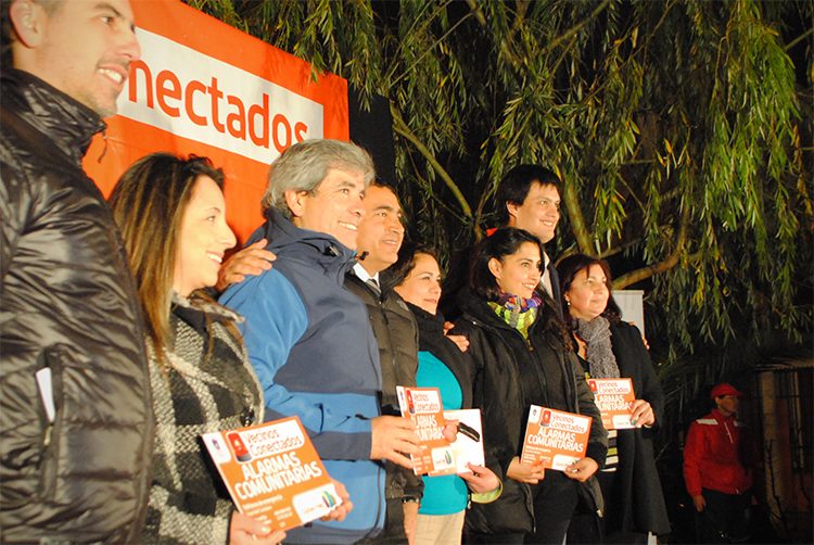 Luego de una ceremonia de entrega de alarmas comunitarias para los residentes de la villa Bosques del Sur, la noche del viernes 22 de agosto de 2014, encontramos al concejal Alejandro Almendares conversando con los vecinos acerca del estudio de títulos que su concejalía está realizando, respecto de la toma de un terreno contiguo al conjunto residencial.