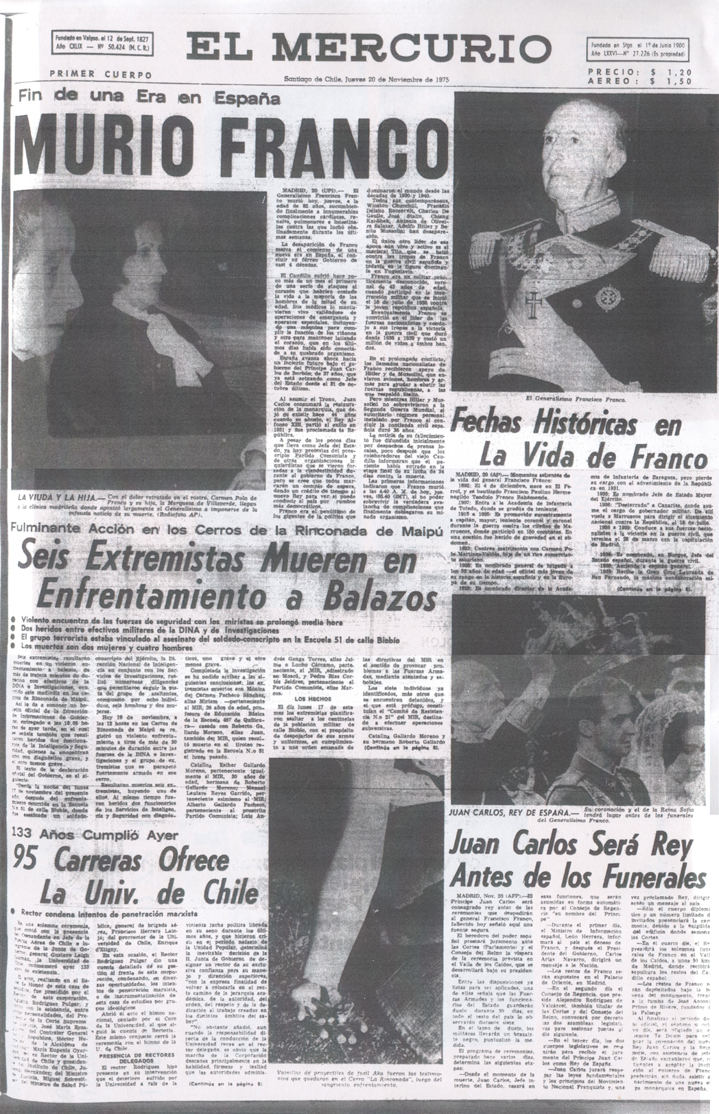 Diario El Mercurio, del 20 de noviembre de 1975.