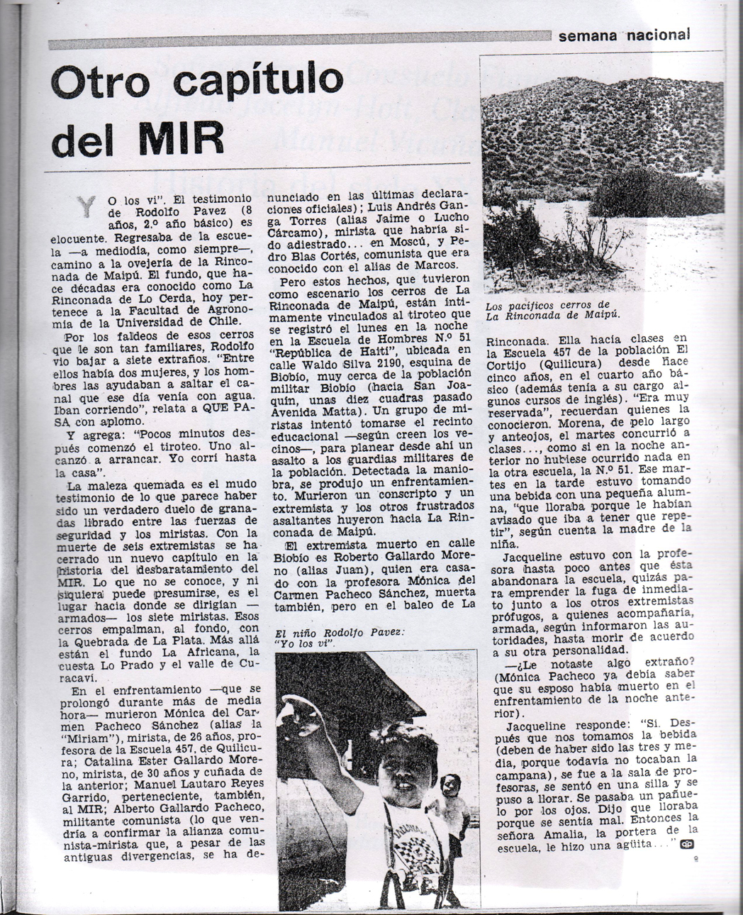 Eran extremistas que habían muerto en un violento enfrentamiento a tiros con fuerzas de la DINA y de Investigaciones, en los cerros de La Rinconada de Maipú.