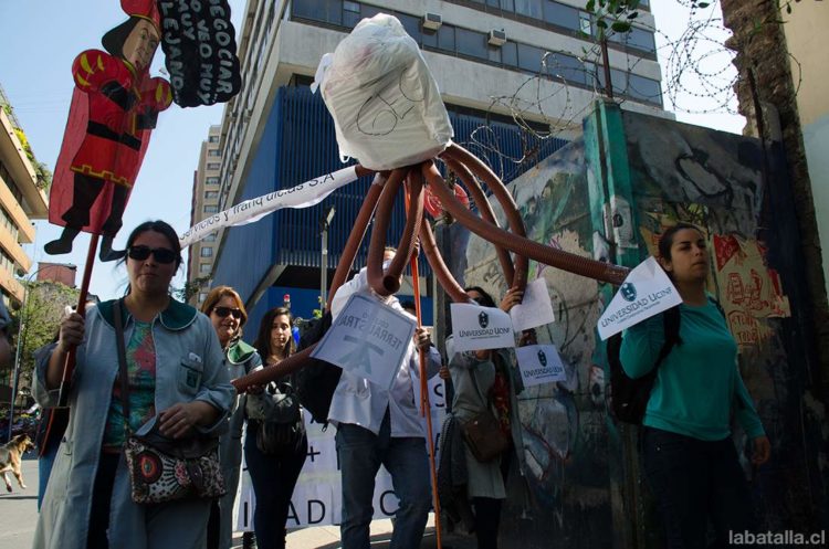 Trabajadoras/es en huelga del Colegio Terraustral Oeste de Maipú protestan contra Grupo Educacional CEPECH