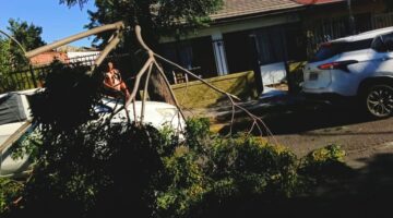 Rama de gran tamaño cae en calle La Colonia y casi impacta a vehículo