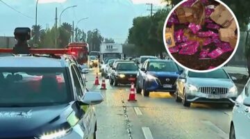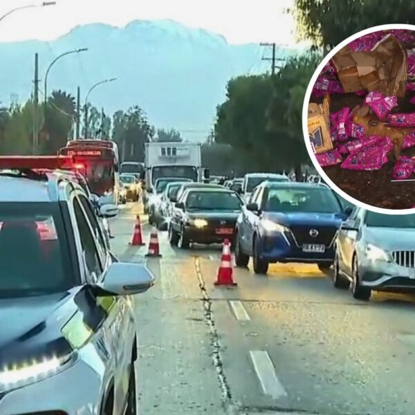 Gran congestión en Camino a Melipilla en Maipú por trabajos de limpieza tras pérdida de carga de camión