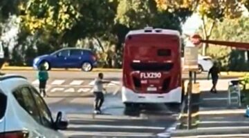 Lavado de bus Red junto a la nueva Comisaría en La Farfana llama la atención de vecinos