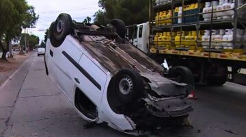 Choque múltiple en Camino a Melipilla: un vehículo termina volcado y dos personas lesionadas en Maipú