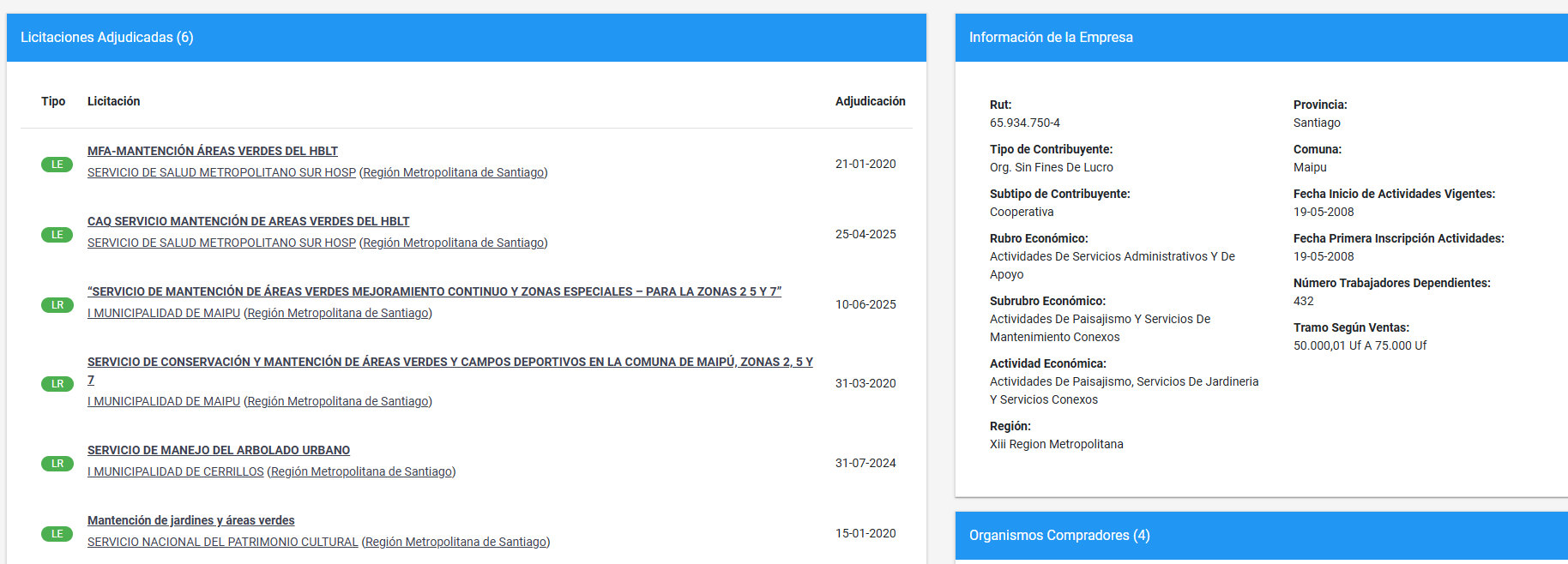 La empresa adjudicataria es una cooperativa sin fines de lucro, constituida formalmente desde el 19 de mayo de 2008, con domicilio en la comuna de Maipú.