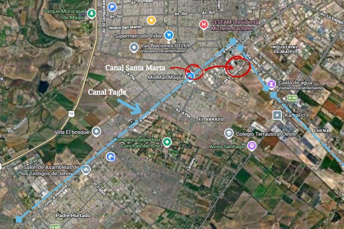 Como antecedente adicional, durante la jornada del 31 de enero circuló un registro audiovisual grabado por una vecina en el eje Camino a Melipilla, a la altura de calle Esdras, frente a recintos comerciales como McDonalds y Construmart del barrio El Abrazo, donde se observa acumulación de agua en la calzada. En ese video, la persona menciona que el “Canal Santa Marta” se encontraba seco; no obstante, el cauce que aparece en las imágenes corresponde al Canal Tagle.