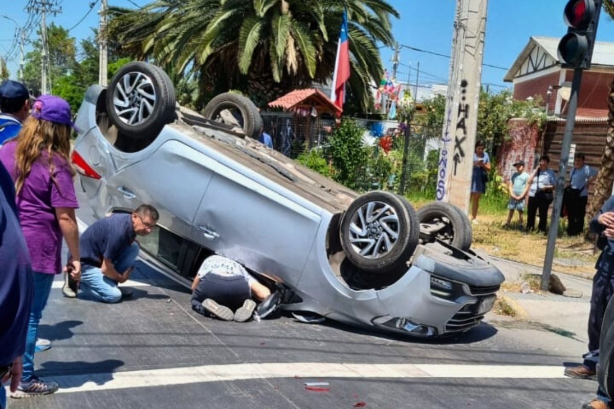 Esta tarde, alrededor de las 12:30 pm, un automóvil volcó en la intersección de Tres Poniente con Rinconada, en el barrio Hospital – Campos de Batalla de Maipú, causando alarma entre los transeúntes y congestión vehicular en la zona.