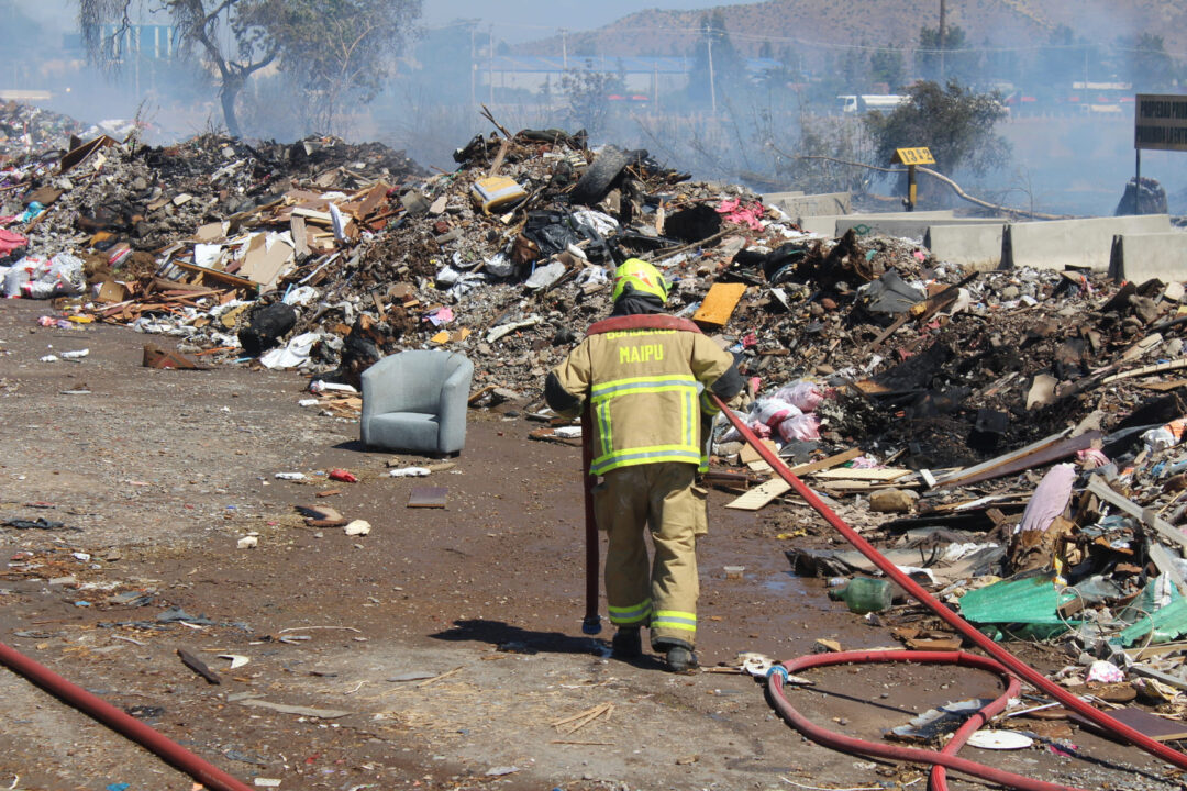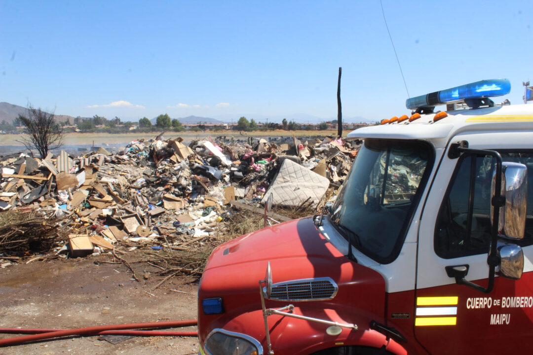 Claudio Salinas, comandante del Cuerpo de Bomberos de Maipú, informó que el incendio, originado en un basural con grandes acumulaciones de desechos, ha sido circunscrito al área del acopio de basura. Sin embargo, señaló que este tipo de siniestros presenta riesgos adicionales debido a la diversidad de materiales quemados, algunos de ellos potencialmente tóxicos o químicos.