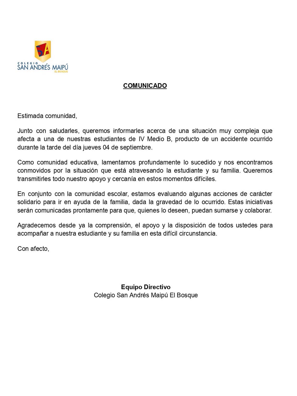 “Como comunidad educativa, lamentamos profundamente lo sucedido y nos encontramos conmovidos por la situación que está atravesando la estudiante y su familia. Queremos transmitirles todo nuestro apoyo y cercanía en estos momentos difíciles”.