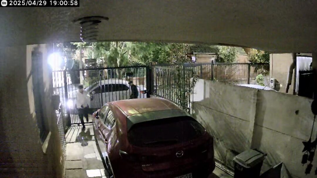 En un primer intento fallido, siendo las 18:48, dos de los delincuentes se bajan del auto en que se movilizaban -al parecer un hyundai o kia- para forzar la reja de acceso, pero ante la alerta de vecinos abandonaron el intento de robo a la vivienda.