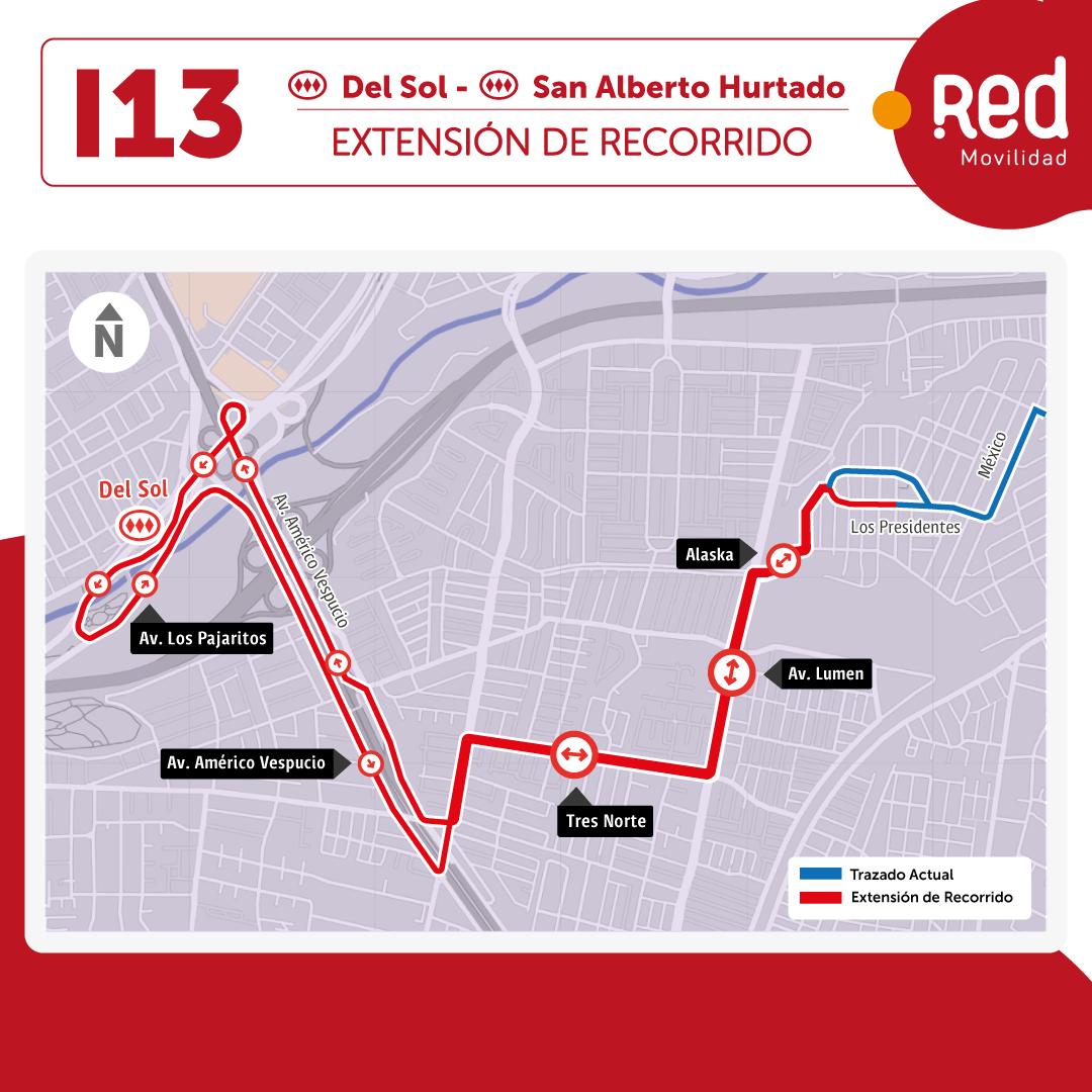 Entre los cambios principales, destacan las extensiones en los recorridos del servicio I13, que llegaba hasta Cerrillos y ahora llegará hasta la Estación Intermodal Del Sol en Maipú. Esta extensión permitirá una mayor cobertura para los habitantes de Maipú y Cerrillos, facilitando la conexión con otros medios de transporte en un punto estratégico de la red.