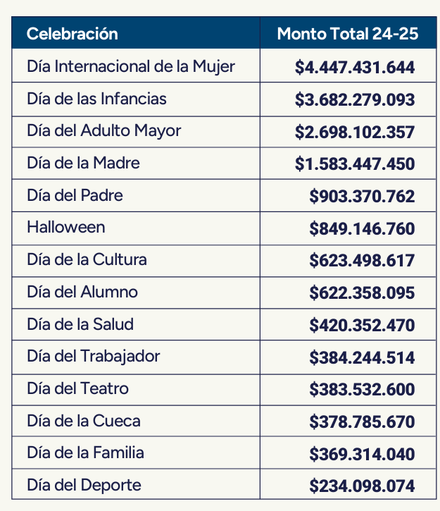 El informe del ente contralor analizó los gastos en celebraciones tales como el Día de la Trashumancia, Día del Juego, Día del Artesano, Día del Artista Local, Día del Circo, Día del Payador, Día del Químico Farmacéutico, Día de la Amistad, Día de la Cuidadora, Día de la Sonrisa, Día de la Primavera, Día de la Solidaridad, Día de las Mascotas, Día de “los que pasamos agosto”, Día de Pascua, Día del Migrante, Día del Perro, Día del Profesional, Día del Títere y Día del Rock.