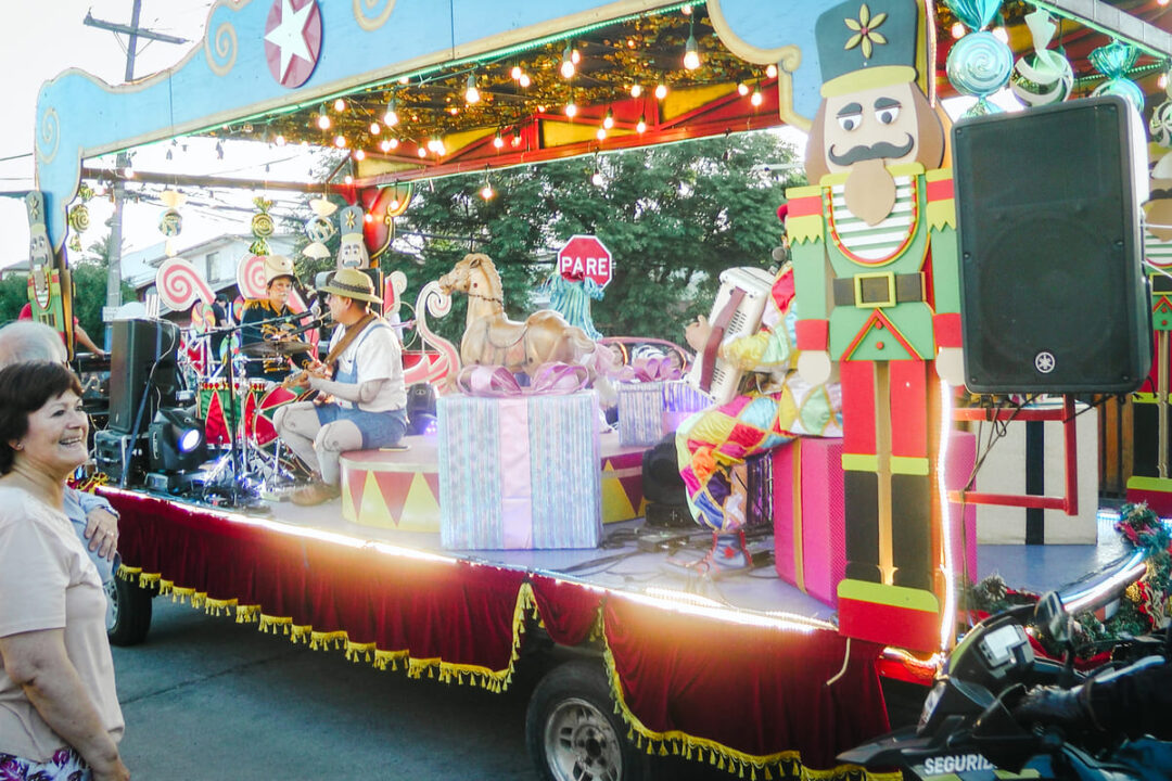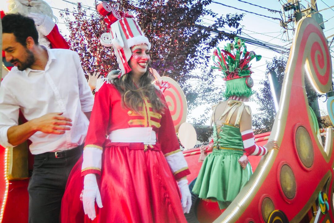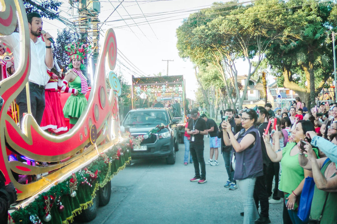 Las familias esperan con alegría en cada esquina, mientras los más pequeños observan ansiosos, tratando de adivinar desde dónde llegará el Viejo Pascuero acompañado de músicos y las inconfundibles melodías de villancicos y temas navideños.