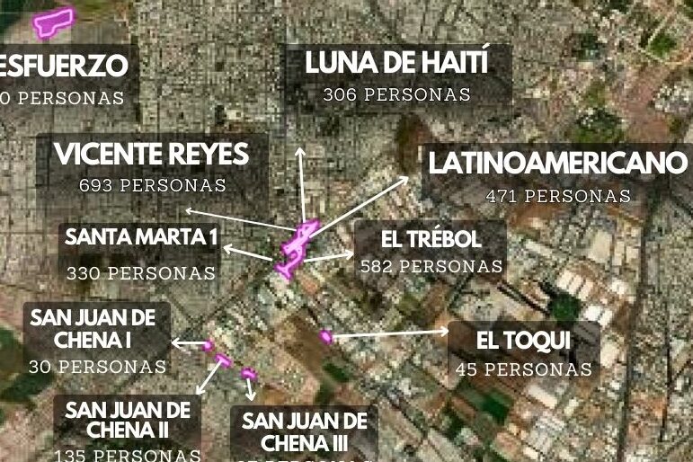 Estos asentamientos suelen ser agrupados mediáticamente como un solo campamento, lo que explica que el alcalde se refiera a todos ellos bajo el nombre de Santa Marta.