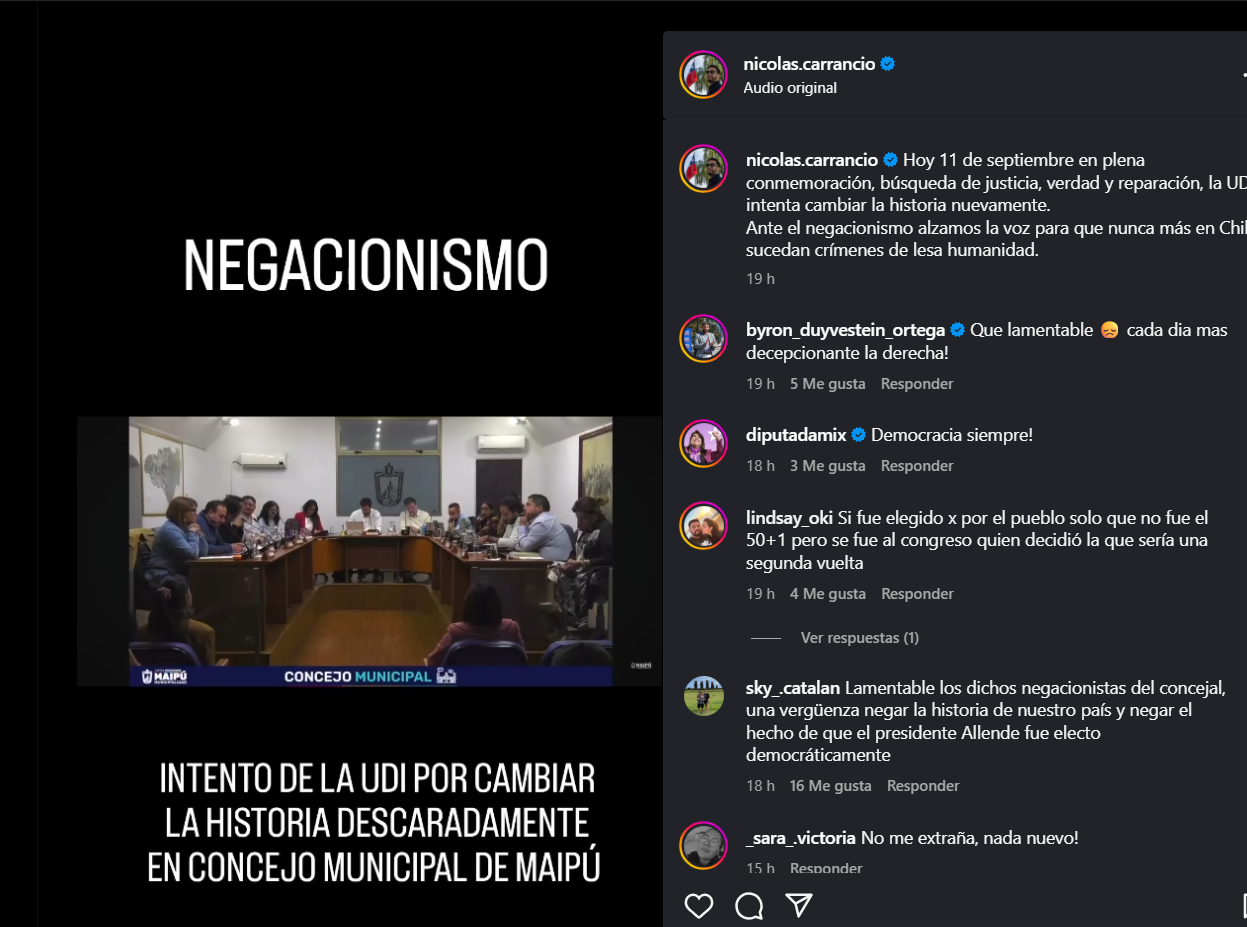 “Negacionismo. Intento de la UDI por cambiar la historia descaradamente en el concejo municipal de maipú”
