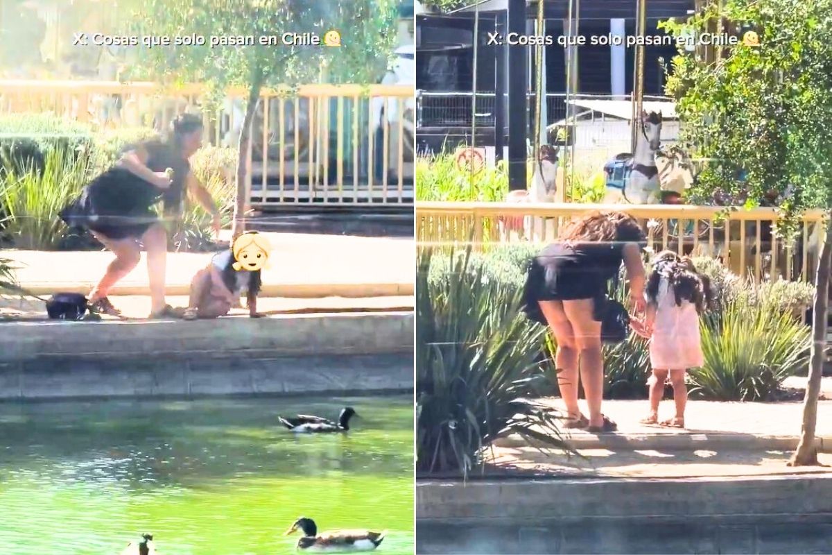 Mujer es grabada sacando un patito desde laguna del Mall Plaza Oeste en Cerrillos