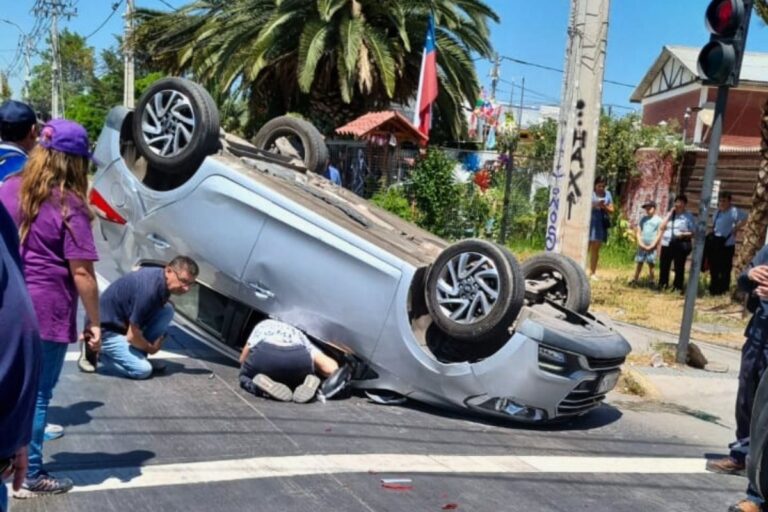 Accidente de tránsito deja un vehículo volcado en Av. Tres Poniente con Camino a Rinconada