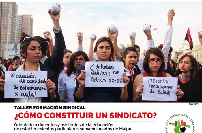 La Federación de Trabajadores de la Educación (www.fte.cl), invita al taller de formación sindical "¿Cómo constituir un sindicato?". Se impartirá el viernes 14 de agosto, desde las 18:00 hrs., en la sede Ceibo Maipú (Elizabeth Heisse 534, villa 4 Álamos). Está orientado a docentes y asistentes de la educación de establecimientos particulares subvencionados de Maipú, y … [Leer más...]