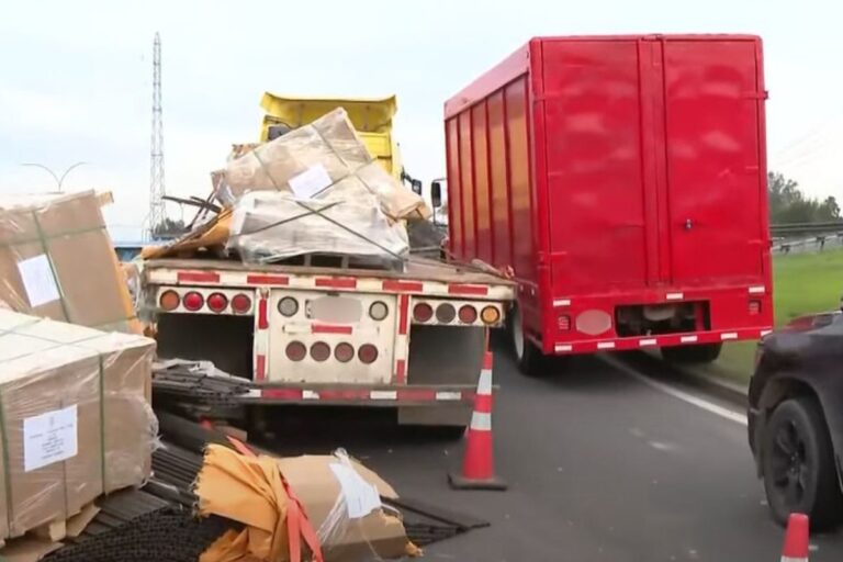 Una falla en los sistemas de sujeción de un camión de carga habría provocado esta tarde la caída de grandes paneles plásticos en la salida de Avenida Vespucio desde la Ruta 78, en dirección hacia el aeropuerto. El incidente ha generado una intensa congestión vehicular, con demoras de hasta 20 minutos por kilómetro en dirección a Santiago. El accidente ocurrió esta tarde … [Leer más...]