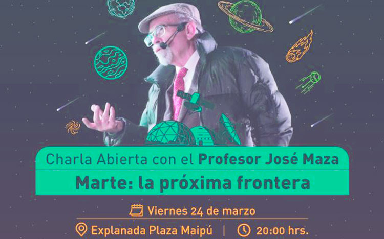 Maipú celebrará el Día de la Astronomía con un destacado invitado. Se trata del profesor José Maza, uno de los astrónomos más reconocidos del país, quien dictará una charla gratuita y abierta en la Plaza de Maipú el próximo viernes 24 de marzo a las 20:00 horas. La charla, titulada “Marte: la Próxima Frontera”, tratará sobre la posibilidad de que la humanidad se … [Leer más...]