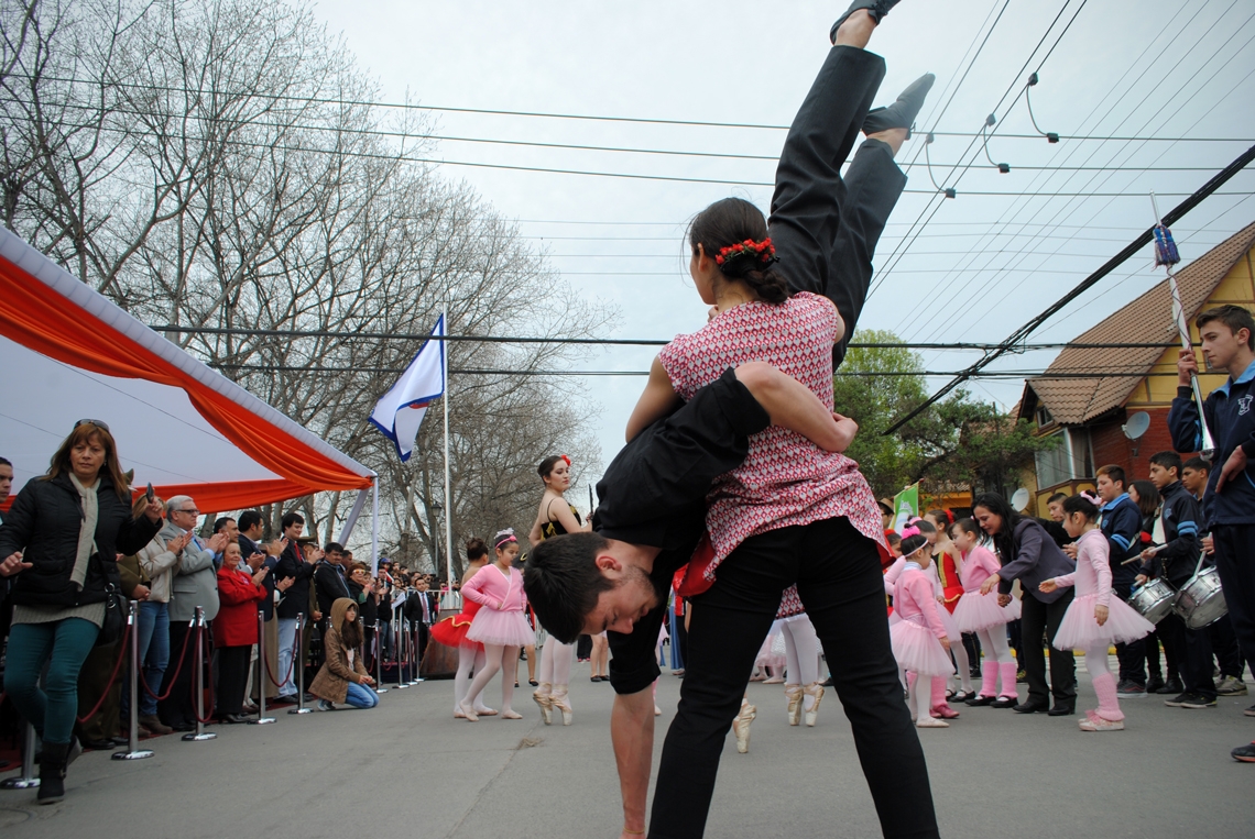 Tras un pie de cueca entre los integrantes del conjunto folclórico del Colegio Alcázar de Maipú y las autoridades, se dio inicio a una nueva versión del Desfile Cívico Militar de Ciudad Satélite 2014.