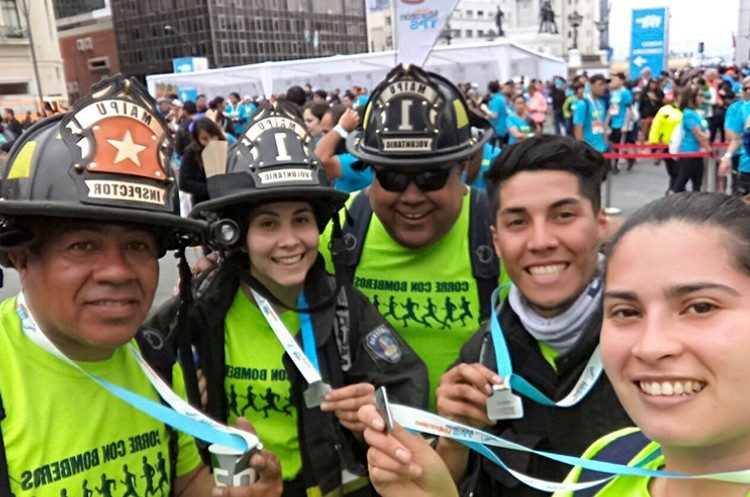 Cinco voluntarios/as del Cuerpo de Bomberos de Maipú, específicamente de la Primera Compañía, corrieron la distancia de 10 kilómetros usando el uniforme con el que apagan incendios.