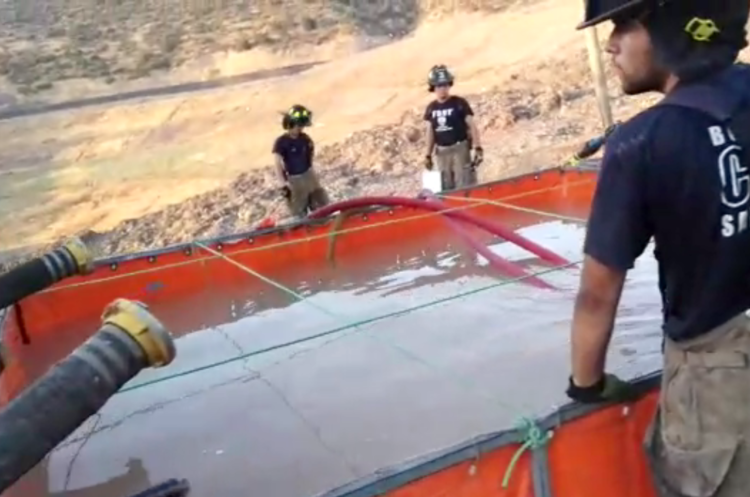 «El trabajo de abastecimiento consiste en que se instalan varias piscinas de aproximadamente diez mil litros cada una -explicó-, y las unidades de abastecimiento descargan el agua en un minuto veinte, un minuto cuarenta. Lo que se gana es que los camiones se vacíen rápido en la piscina. Nosotros instalamos bombas de manera estratégica en las piscinas, para que aspiren agua, que es una metodología que se ocupa para desplazar grandes flujos de agua a grandes distancias».