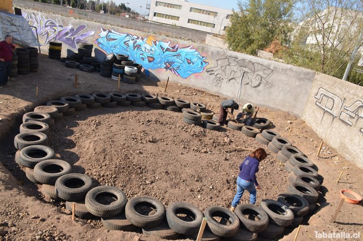 «Tenemos tres corridas de neumáticos, para empezar -explica Víctor Águila, respecto del proceso de construcción-, y después tenemos un refuerzo de hormigón armado, para asegurar la estabilidad estructural. Sobre ese refuerzo, que va a ser como un anillo superior perimetral, va a ir emplazado y puesto armado el domo».