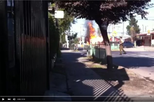 Un camión repartidor de gas con cilindros se incendió el sábado 27 de febrero de 2016, al lado del Colegio Los Bosquinos, en Av. El Olimpo con Pdte. Arturo Alessandri Palma, comuna de Maipú.