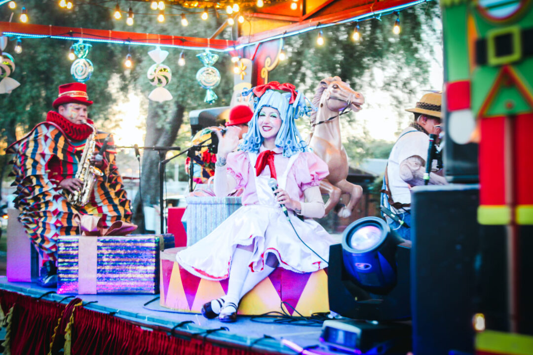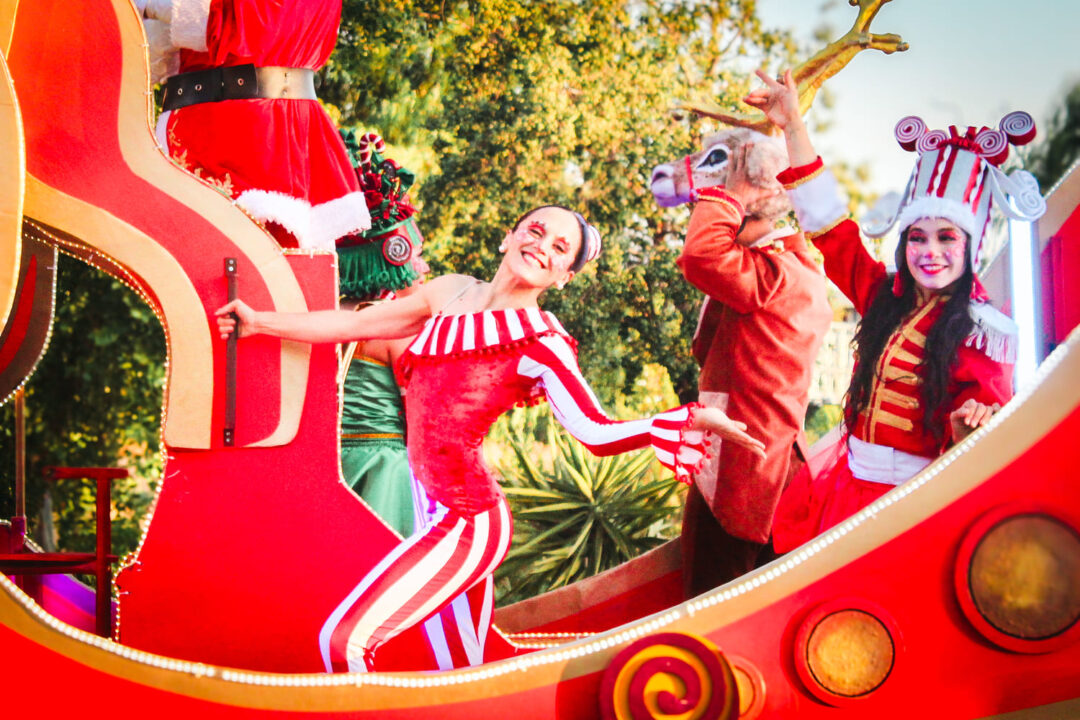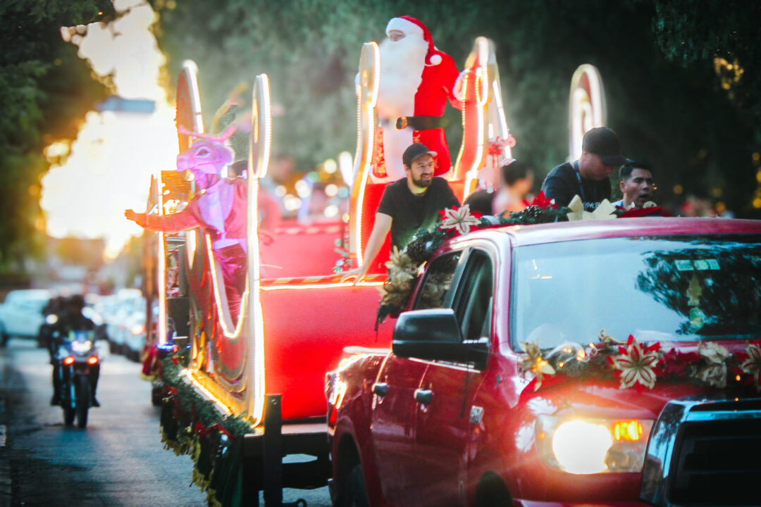 Las familias, los niños y niñas de cada barrio y pasaje, sienten las melodías navideñas y las sirenas que abren paso a los carros alegóricos de navidad (a cargo de la compañía teatral Otro Arte) y se agrupan en las esquinas y espacios desde donde pueden ver y saludar a esta comitiva navideña con el viejo pascuero, músicos y bailarines/as.