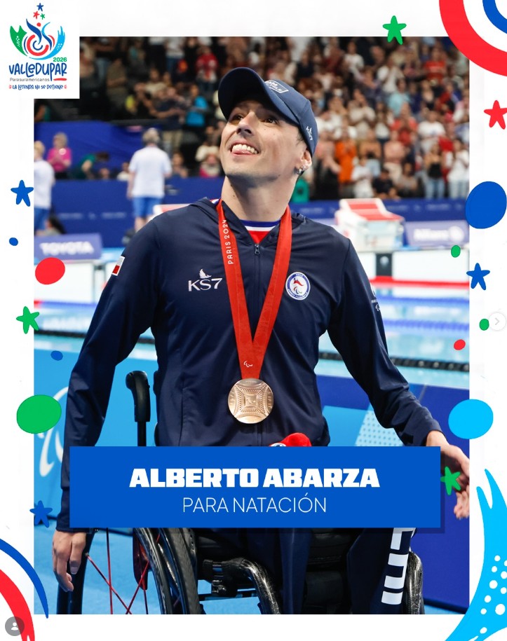 Uno de ellos es Alberto Abarza, referente del deporte paralímpico chileno y ganador de múltiples medallas internacionales. La piscina municipal de Maipú lleva su nombre en su honor. En su trayectoria destacan el oro y dos platas obtenidas en los Juegos Paralímpicos de Tokio 2020, además de tres medallas de bronce en Juegos Paralímpicos de París 2024.