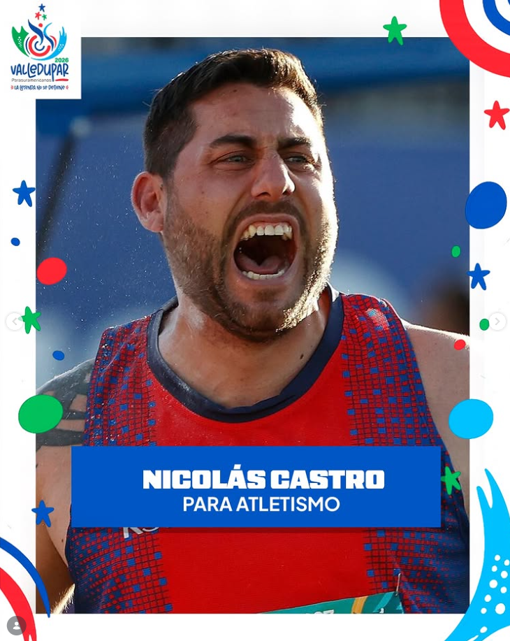 En para atletismo, Nicolás Castro aparece entre los once atletas chilenos clasificados para el certamen sudamericano. Su cupo se definió según el ranking sudamericano de cada prueba, considerando los resultados obtenidos entre el 1 de agosto de 2025 y el 10 de febrero de 2026. El maipucino competirá en lanzamiento de bala categoría F42.