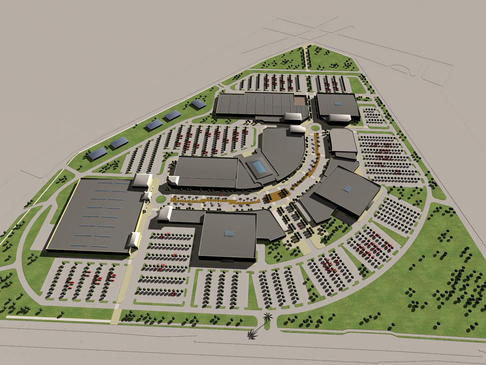 Sin embargo, el diseño fue reducido desde más de 41.000 m² a cerca de 31.000 m², eliminando cines, patio de comidas y zonas de juegos.