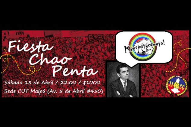 “Chao Penta” se llama la fiesta organizada por las JJ. CC de Maipú, y que comenzará a las 22:00 hrs. del próximo sábado 18 de abril, en la sede de la CUT Maipú (5 de abril 450), a pocos pasos del Templo Votivo.