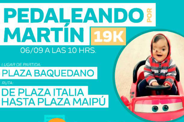 La agrupación Ciclistas Camino a Melipilla invita a la comunidad a pedalear a beneficio de Martín, pequeño de menos de dos años quien sufre de hidrocefalia y una malformación en su carita.