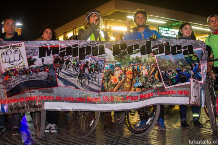 «Maipú pedalea es una coordinación -explicó a La Batalla el concejal comunista- donde participan la mayoría de las organizaciones ciclistas de la comuna. En ella están representadas Ciclisthrash, Piñón y paz, Locos ciclistas y Ciclovías a Camino a Meilipilla«.