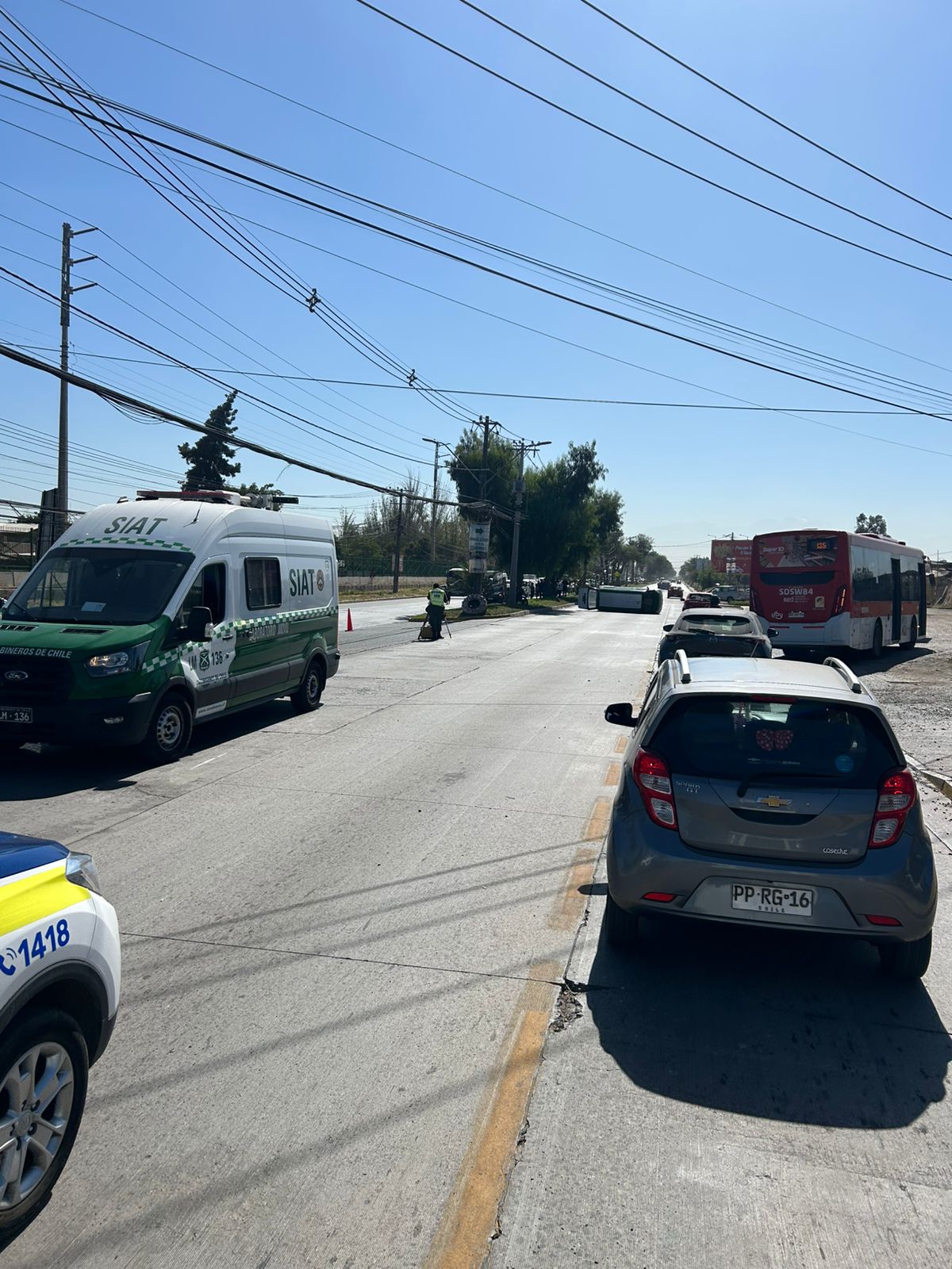 Debido al procedimiento de emergencia y a las labores de retiro del vehículo volcado, el tránsito en el sector se mantiene interrumpido, habilitándose un desvío parcial para los vehículos que se dirigen hacia Santiago.