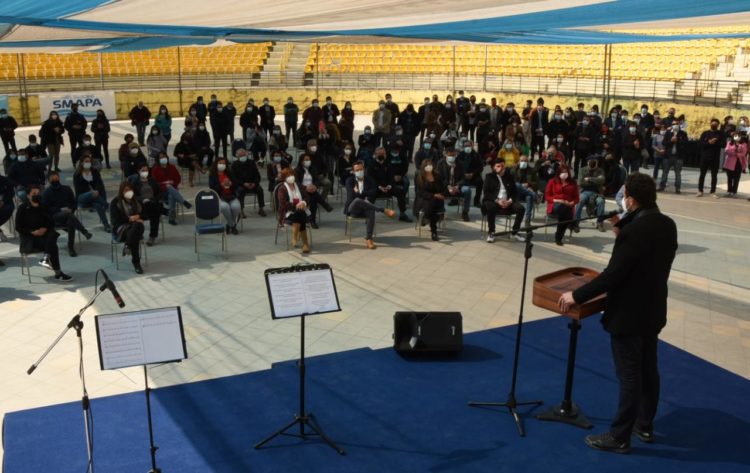 El acto tuvo un repertorio que incluyó “Tres versos para una historia” en el violín de Rodolfo Reyes y la voz de Luis Fabrizio Tapia, quien dedicó su interpretación a Luis Desiderio Moraga Cruz, su abuelo y Detenido Desaparecido desde el 20 de octubre de 1975. Y contó con la locución de Miguel Davagnino, histórica voz de las comunicaciones, presentador de noticias hasta el Golpe de Estado, ex director de DICAP y creador del programa “Nuestro Canto”, que difundió la Nueva Canción Chilena en plena dictadura.