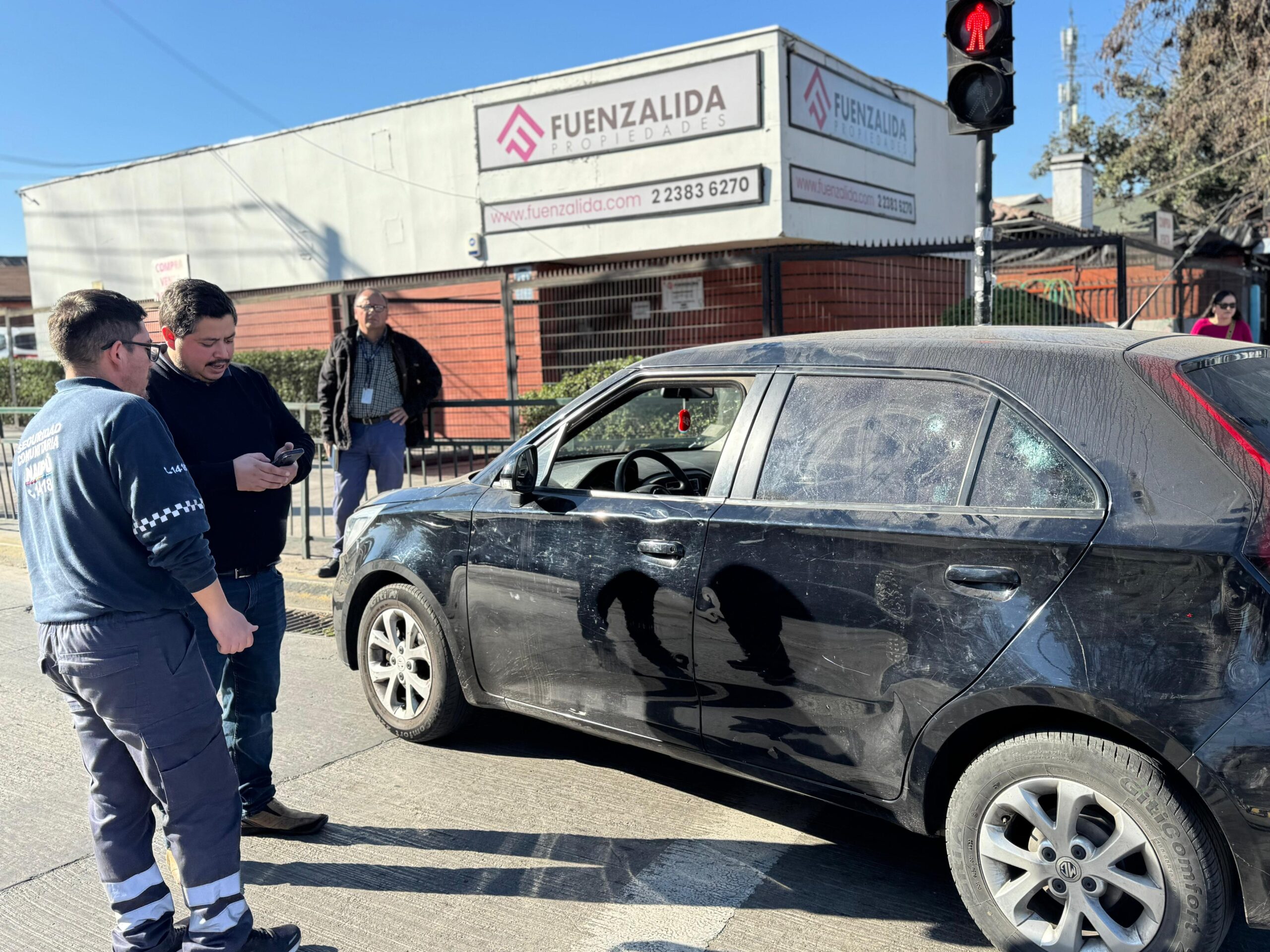 “Estábamos en tema de fiscalización y nos tocó casi presenciar el hecho in situ (…) un grupo de antisociales, barristas de Colo Colo, abordaron a la persona que venía por 5 de abril doblando por Primera Transversal y le intentaron robar el auto, golpeándolo a él en el interior”, explicó Aguilera.