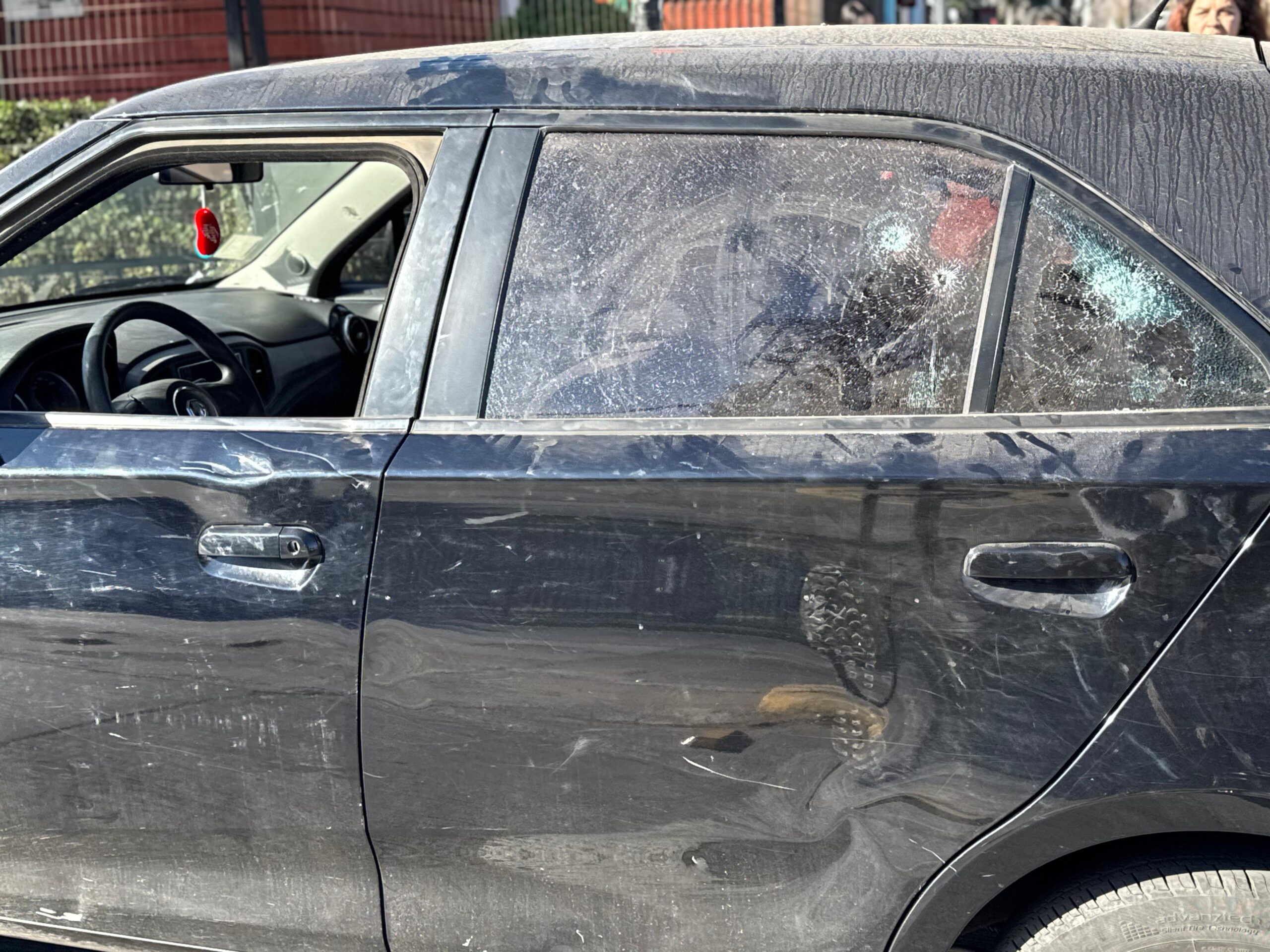 El vehículo sufrió daños materiales, incluyendo la rotura del vidrio lateral trasero, mientras que el conductor fue agredido y despojado de sus pertenencias: celular, lentes, objetos de trabajo y las llaves del automóvil, lo que impidió que pudiera retirarse del lugar.