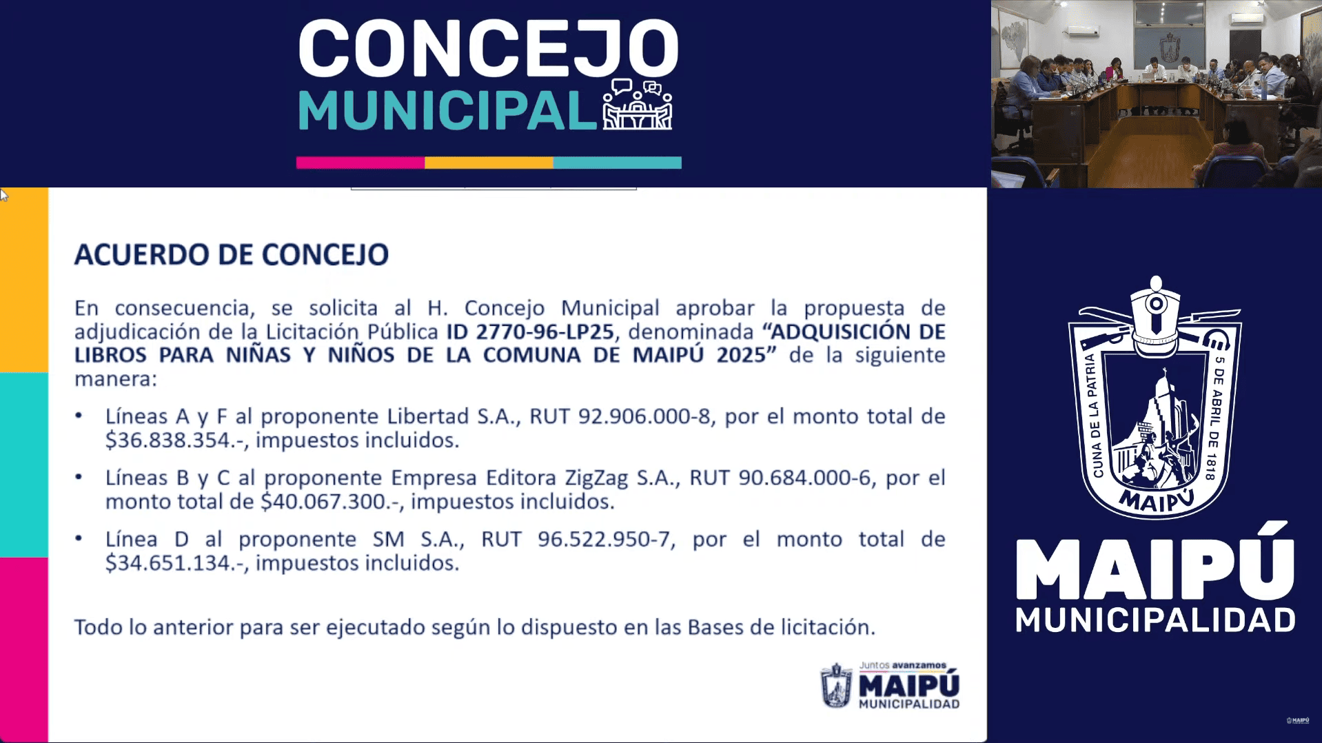 Con diez votos a favor y uno en contra, el Concejo Municipal de Maipú aprobó la licitación pública para la adquisición de 23.500 libros destinados a niñas y niños de la comuna en el marco de las celebraciones navideñas de 2025. La iniciativa contempla una inversión cercana a los 160 millones de pesos.