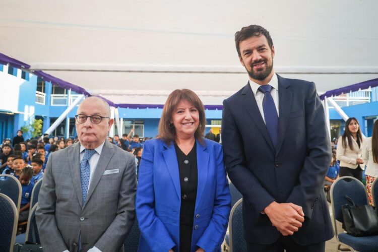 Embajador de Argentina, Jorge Faurie, directora (s) del colegio General San Martín, Marisol Pizarro y alcalde de Maipú, Tomás Vodanovic. Foto: colegio General San Martín.