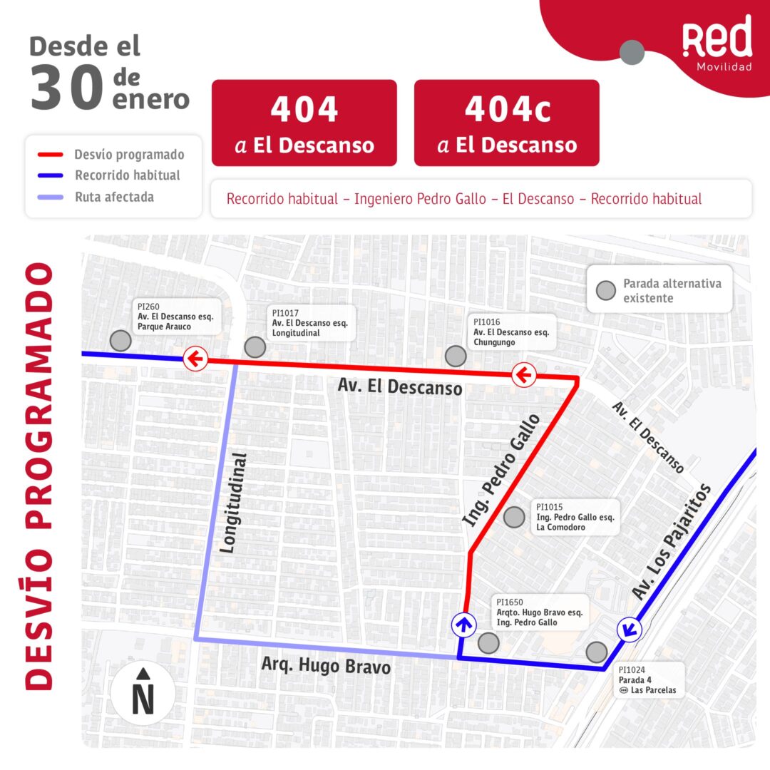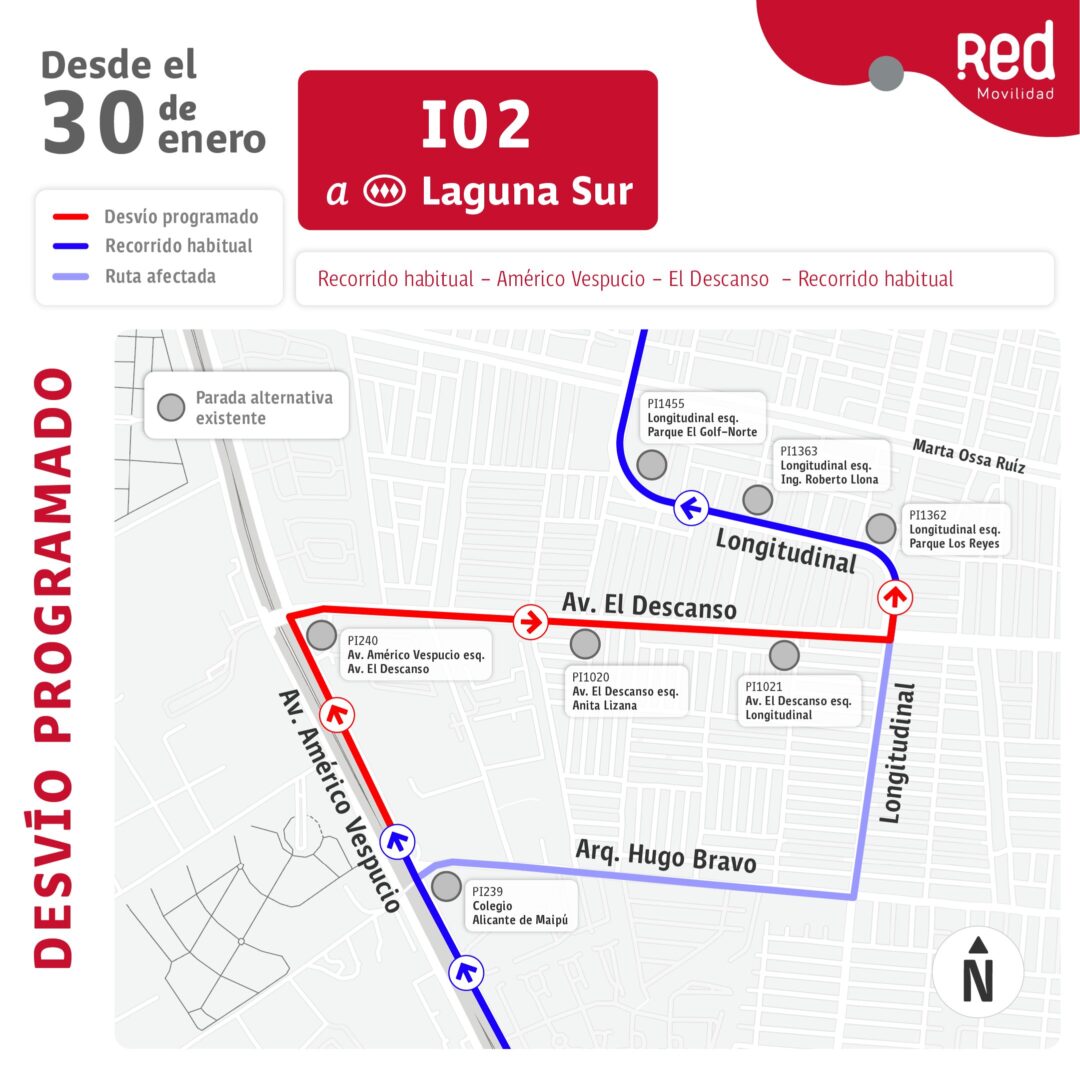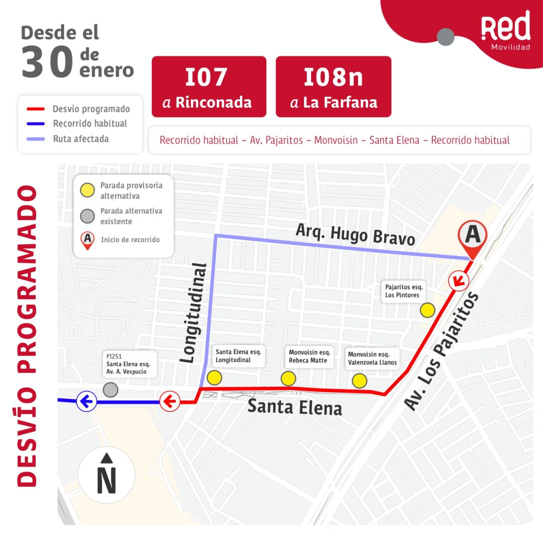 Desde el jueves 30 de enero, varios recorridos del sistema Red Movilidad modificarán su ruta en Maipú debido a importantes obras de renovación de infraestructura sanitaria y entubamiento de un canal de regadío.