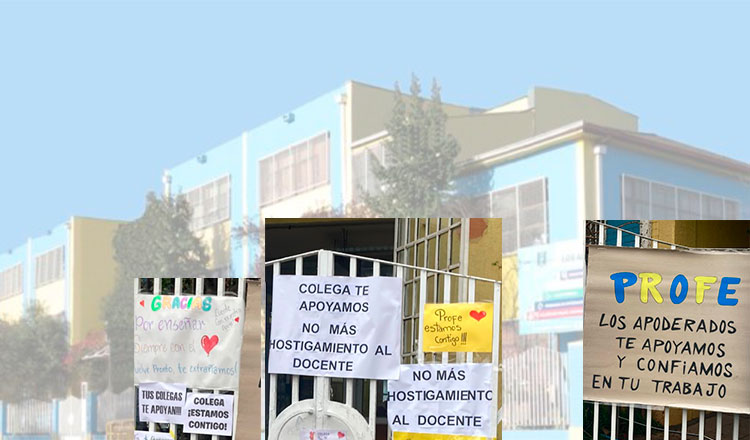 Por esto, no debería llamar la atención ver el día lunes 10 de junio, en las afueras de la Escuela  Municipal  los Alerces, en el inquieto cruce de los calles Glorias Navales con Faustino Sarmiento, como los transeúntes que pasaban por el lugar o que llegaban con sus hijos al colegio, miraban con cierto asombro poco antes de iniciarse las clases a las ocho de la mañana, a un grupo numeroso de profesores(as) portando carteles en los que solidarizaban con una docente suspendida de sus funciones por denuncia formulada en su contra. Los docentes ingresaron luego a sus clases y dejaron como testimonio los carteles, una apoderada que miraba atentamente la manifestación. Se acercó al observar nuestra cámara fotográfica y luego de preguntarnos de “donde éramos”, nos dijo que estaba bueno ya de abusos con los profesores en este colegio. “Nosotros los apoyamos y también vamos a protestar, si la profesora no vuelve”.