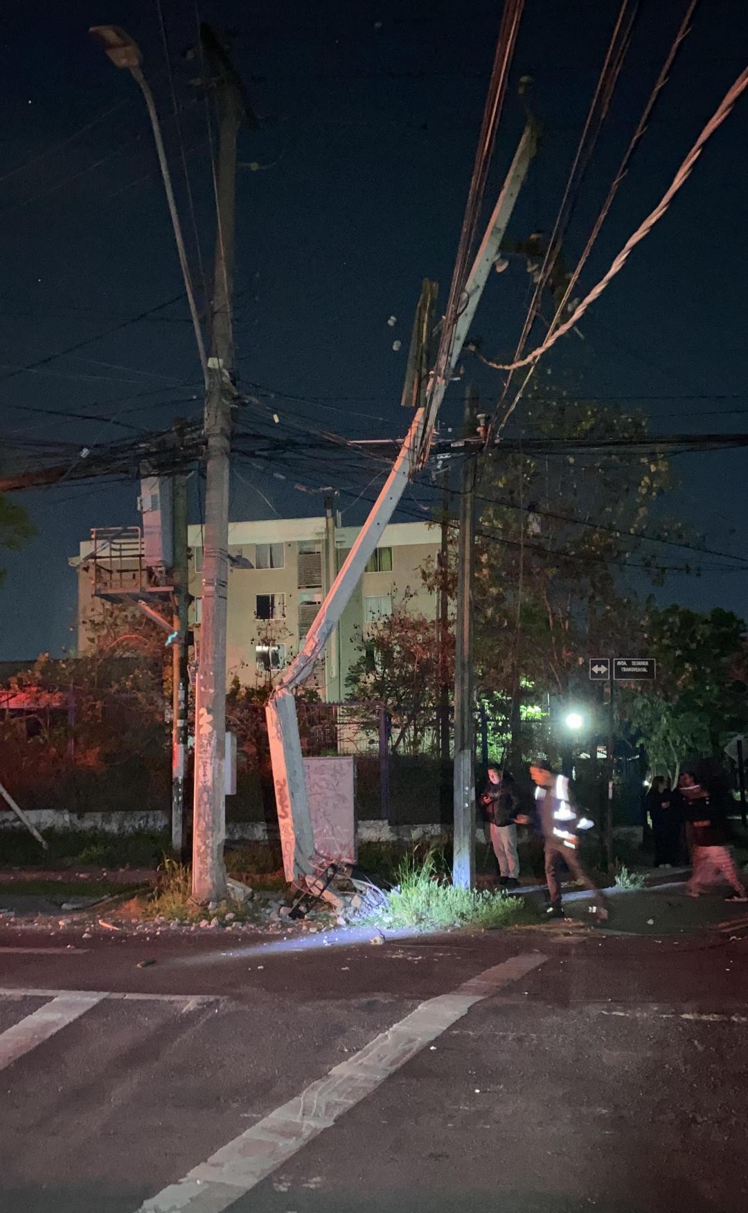 Sin embargo, las imágenes compartidas por residentes muestran que el poste chocado está en Uno Sur con Segunda Transversal, lo que generó confusión respecto al punto exacto del incidente.