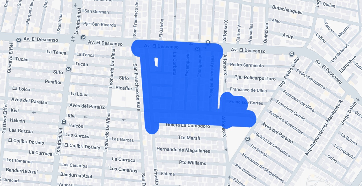 - Barrio Longitudinal: cuadrante entre El Descanso, Ernesto Pinto Lagarrigue, Aves del Paraíso y Pasaje Barros Arana, entre las 11:00 y las 17:00 horas (hasta 6 horas).
