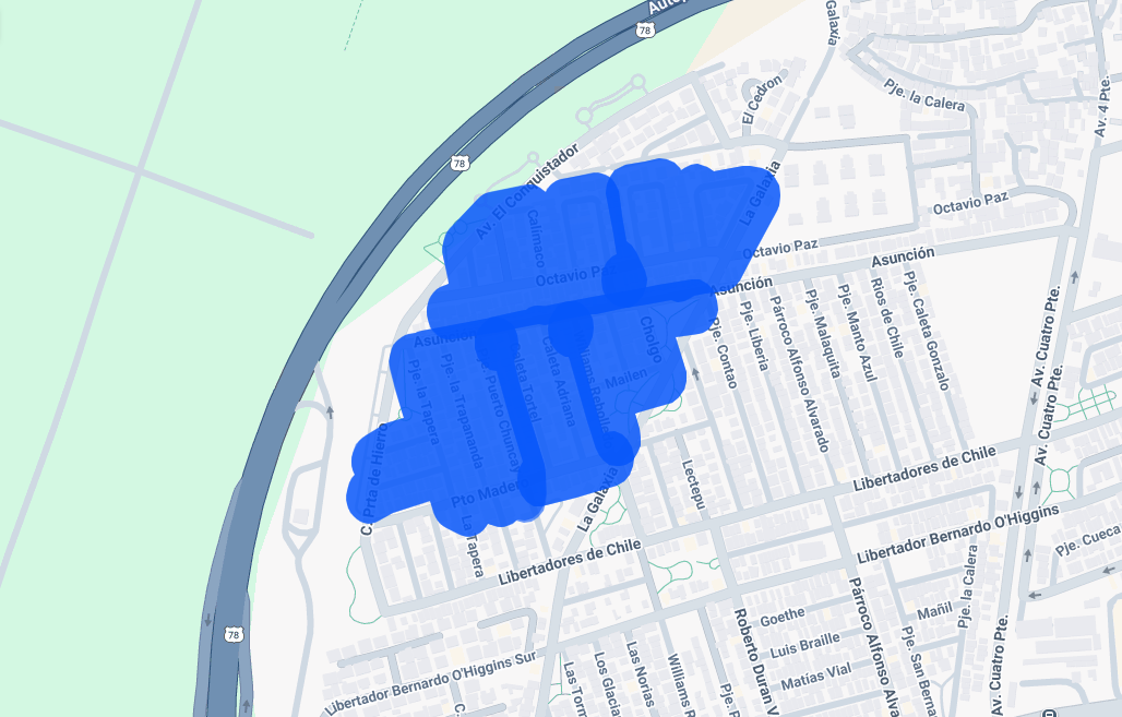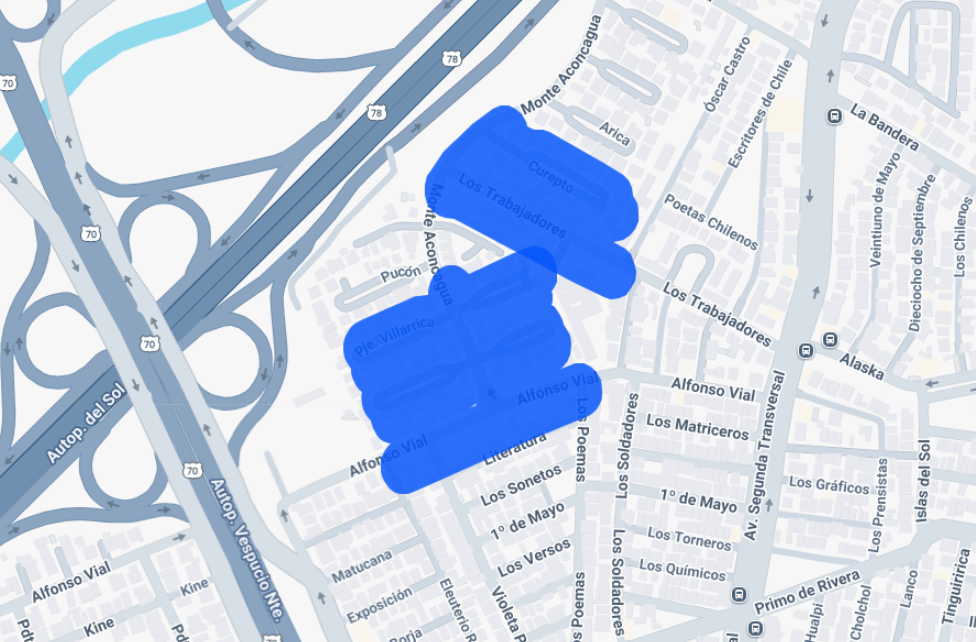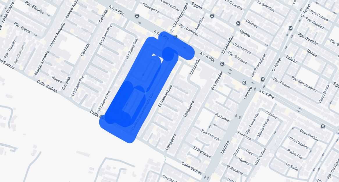 - Barrio El Abrazo: sector comprendido entre Esdras, Constantinopla Poniente, Cuatro Poniente y Constantinopla Oriente, desde las 09:30 hasta las 15:30 horas (6 horas).